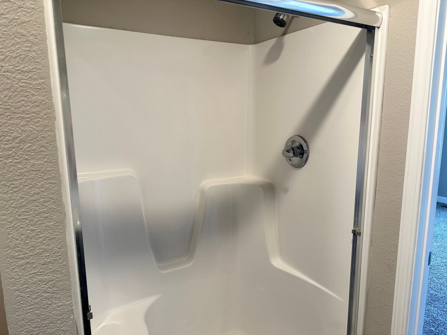 Primary Bedroom, Closet, and Full Attached Bathroom with Double Vanity Sinks and Shower