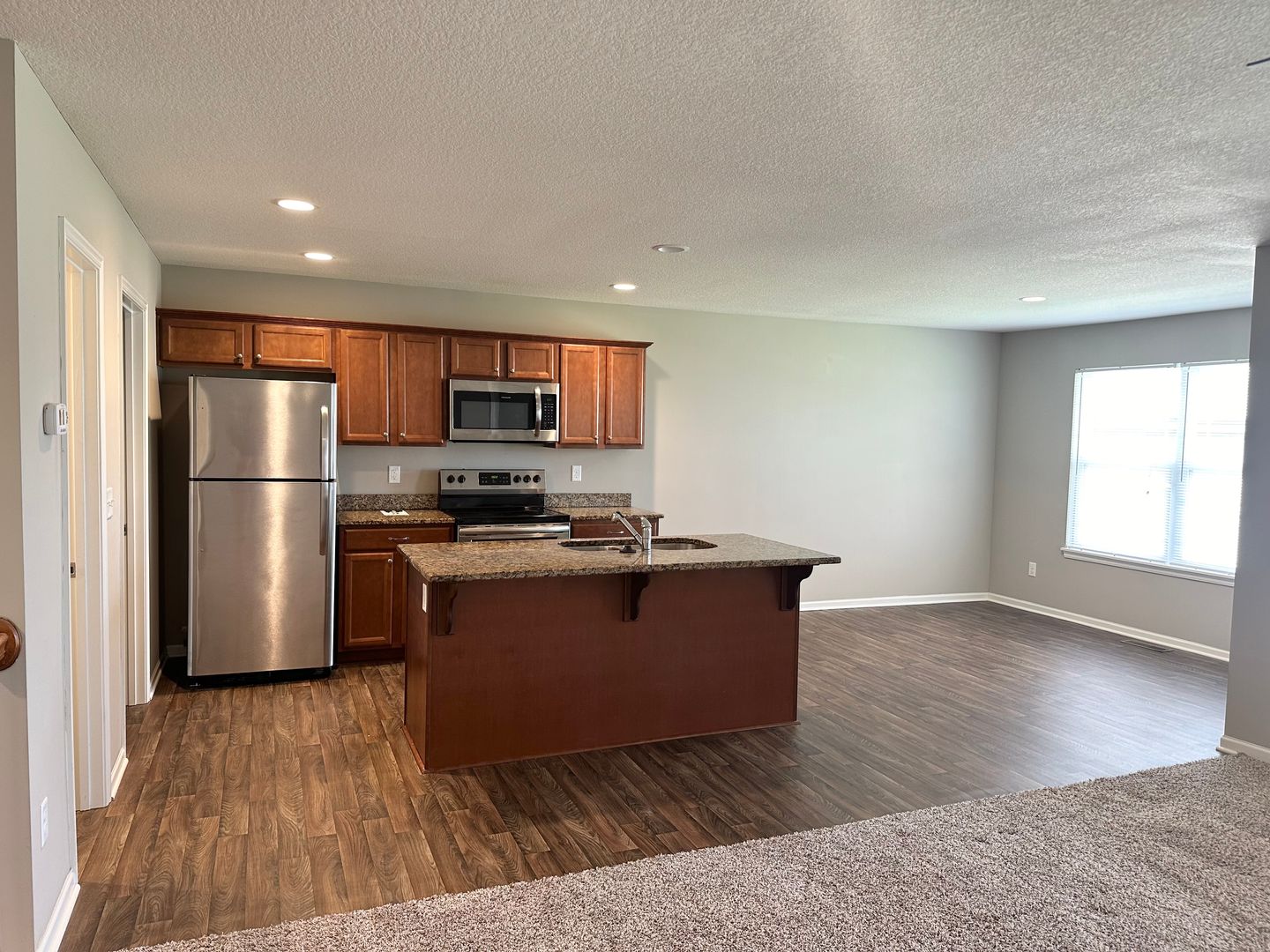Dining and Kitchen with Stainless Steel Appliances, Granite Countertops, and Pantry
