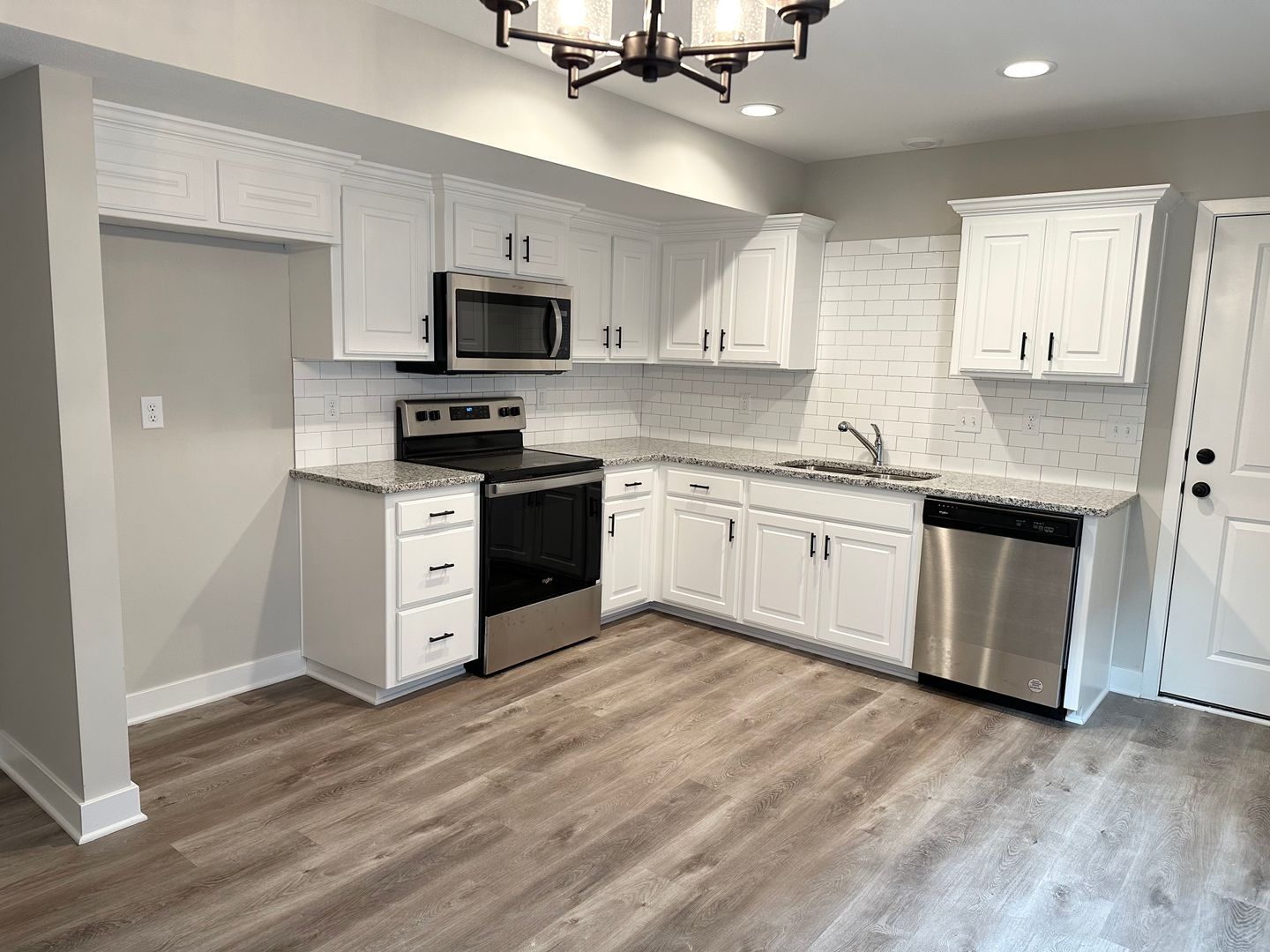 Kitchen with Stainless Steel Appliances and Granite Countertops.