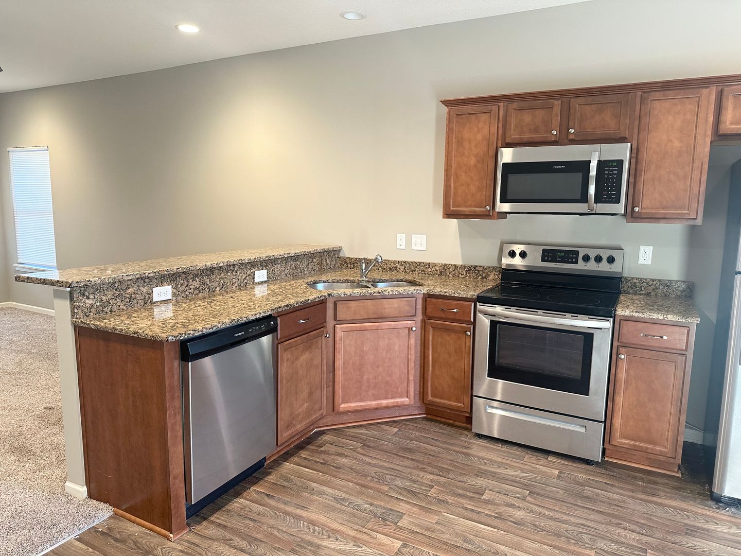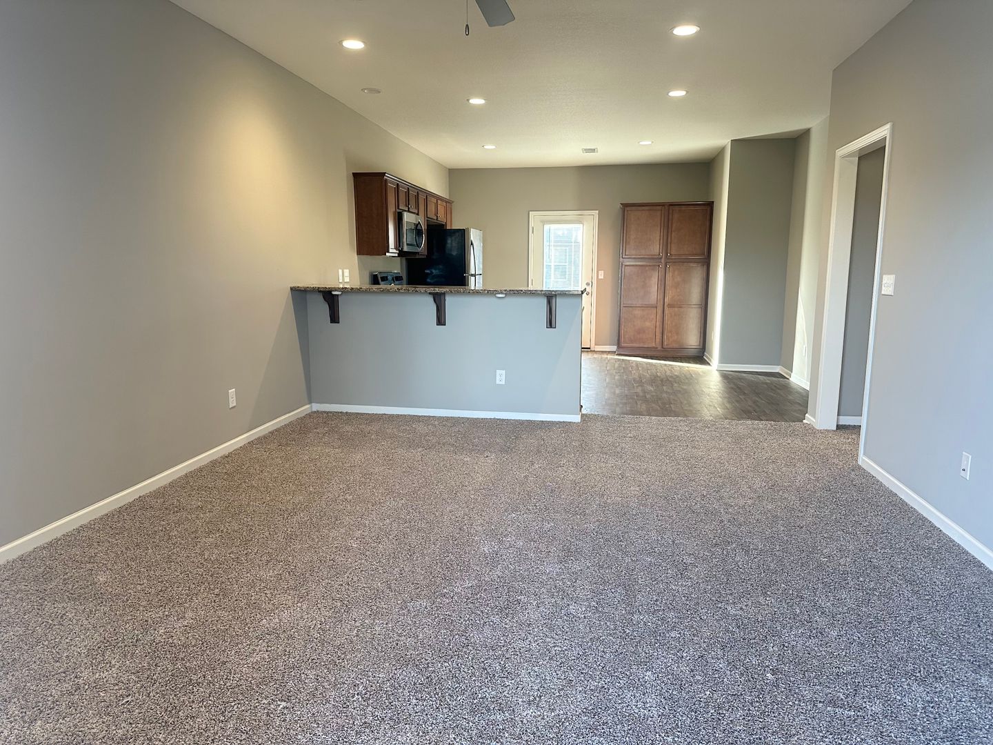 Open Dining and Kitchen with Stainless Steel Appliances, Granite Countertops, Breakfast Bar, and Pantry