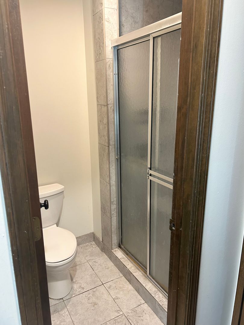 Main Bedroom and Full Attached Bathroom with Low Lipped Tile Shower and Closet