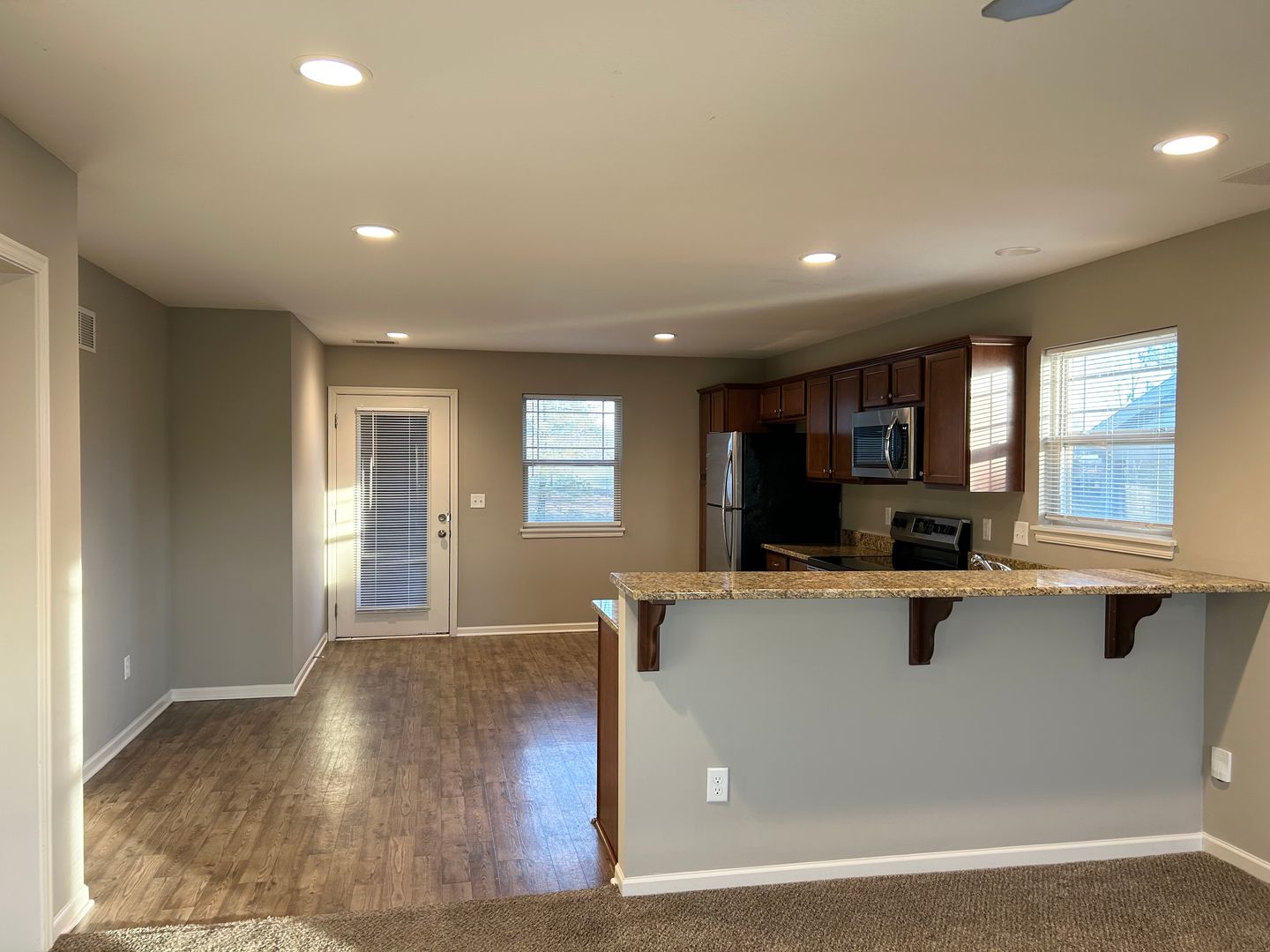 Open Dining and Kitchen with Stainless Steel Appliances, Granite Countertops, Breakfast Bar, and Pantry